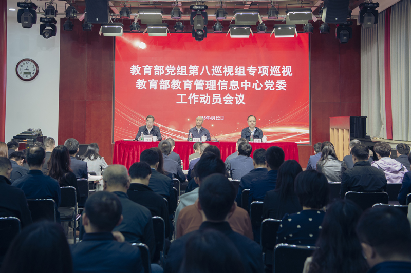 根据教育部党组巡视工作统一部署,2025年4月22日,教育部党组第八巡视组专项巡视教育部教育管理信息中心(以下简称信息中心)党委工作动员会议召开。会前,巡视组组长彭兴颀、副组长宁锐与信息中心党委书记、主任李建聪见面沟通,通报了巡视工作有关安排。会上,彭兴颀作了动员讲话,对深入学习贯彻习近平总书记关于教育、关于巡视工作的重要论述,贯彻落实党的二十大、二十届三中全会和全国教育大会精神,贯彻落实二十届中央纪委四次全会和全国巡视工作会议要求,贯彻落实党中央重大决策部署和部党组工作要求,扎实开展巡视工作提出要求。李建聪主持会议并作表态发言。